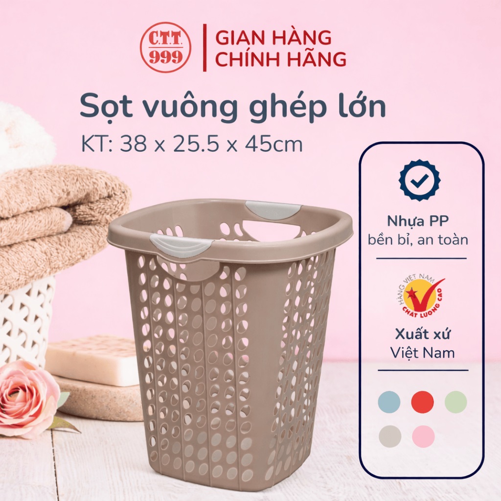 Sọt vuông nhựa có kích thước và màu sắc đa dạng, sử dụng linh hoạt để: